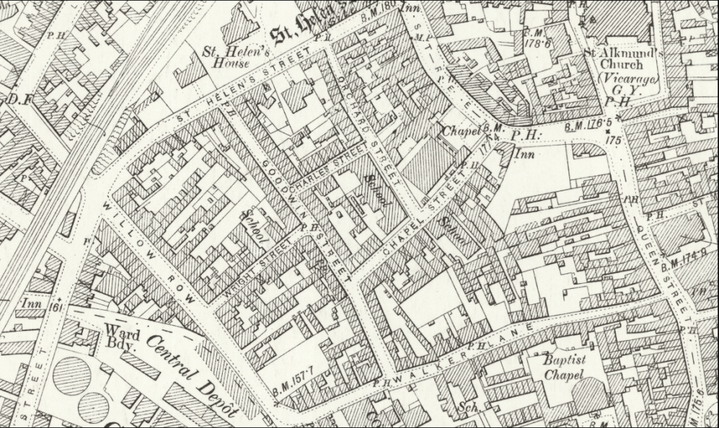 [6]Map showing the proximity of Walker Lane and Willow Row in Derby 19th Century.